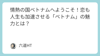 ベトナムのおススメ 情熱の国ベトナムへようこそ!恋も人生も加速させる「ベトナム」の魅力とは? ベトナム人との恋愛や結婚を考えているあなたにとって、相手のルーツである「ベトナム」を知ることは、二人の距離を縮める一番の近道です。「親日家が多くて、美男美女が多い」——そんなイメージをお持ちかもしれませんが、実際のベトナムはそれ以上に刺激的... 2026.02.01 ベトナムのおススメ