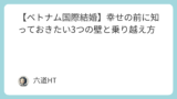筆者も離婚後、再婚に向けていろいろ行動を起こしていましたが日本人同士で理想と現実の狭間でなかなかうまくいかずそんな中、偶然にもベトナムの女性と仲良くなることができました。はじめはもちろん国籍や言葉、文化の違いから若干の不安や抵抗はありましたが距離が近づくにつれてそれが杞憂だと気づきました。また、気にして回りを見るとすでに日本人とベトナム人のカップルがすでにそこそこ存在していたんです。