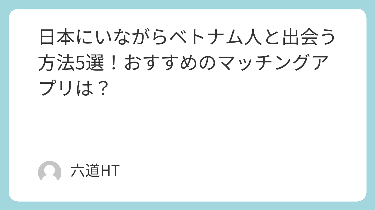 「ベトナム人女性(男性)と出会いたいけれど、どうすればいい?」