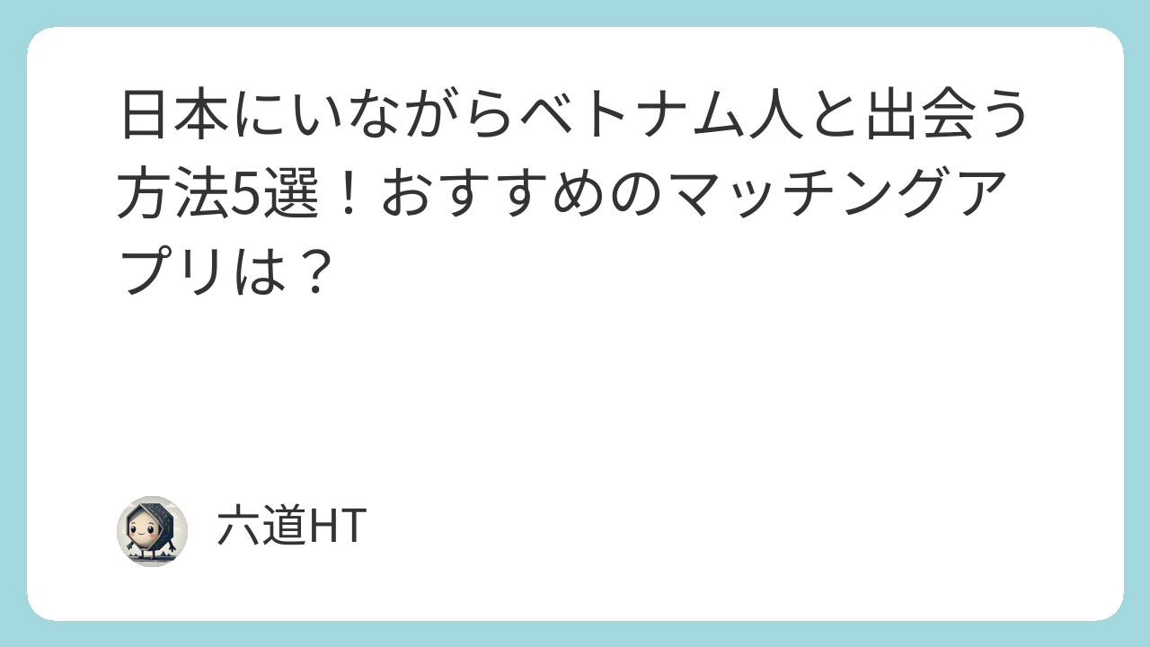 「日本に住んでいるベトナム人と自然に知り合うきっかけがほしい」そんな思いを持ってる人も多いはず。