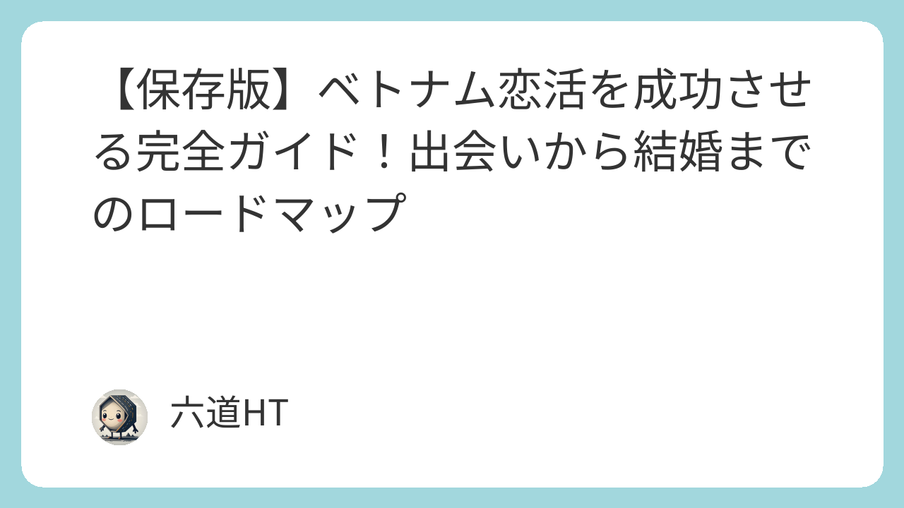「素敵なベトナム人のパートナーを見つけて、幸せになりたい」そう考えているあなたへ。この記事では、ベトナム人との交際歴5年の筆者がこれまで解説してきた「ベトナム恋活」のノウハウを凝縮し、最短ルートで理想の出会いを見つけるためのステップを簡潔にまとめました。